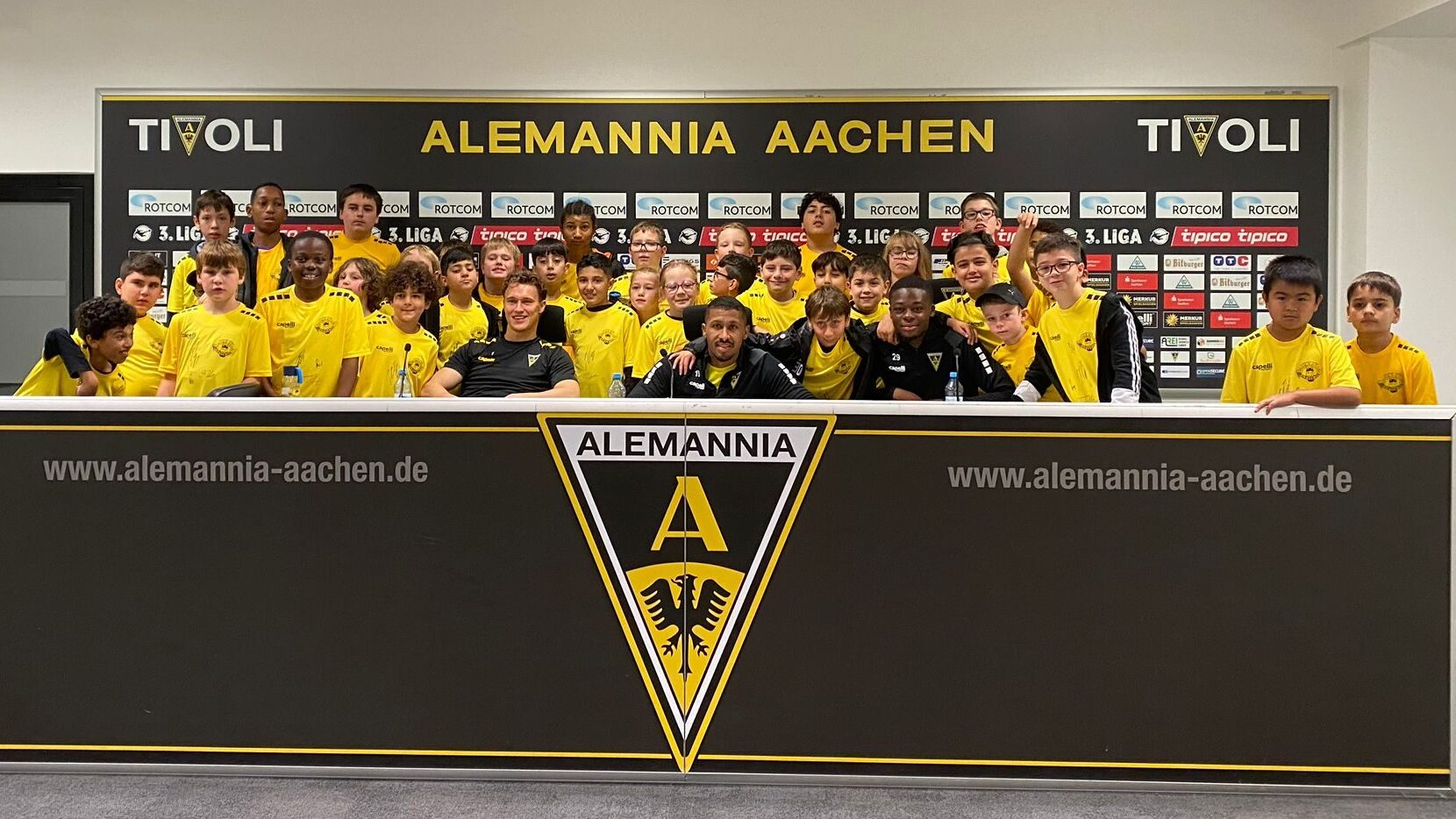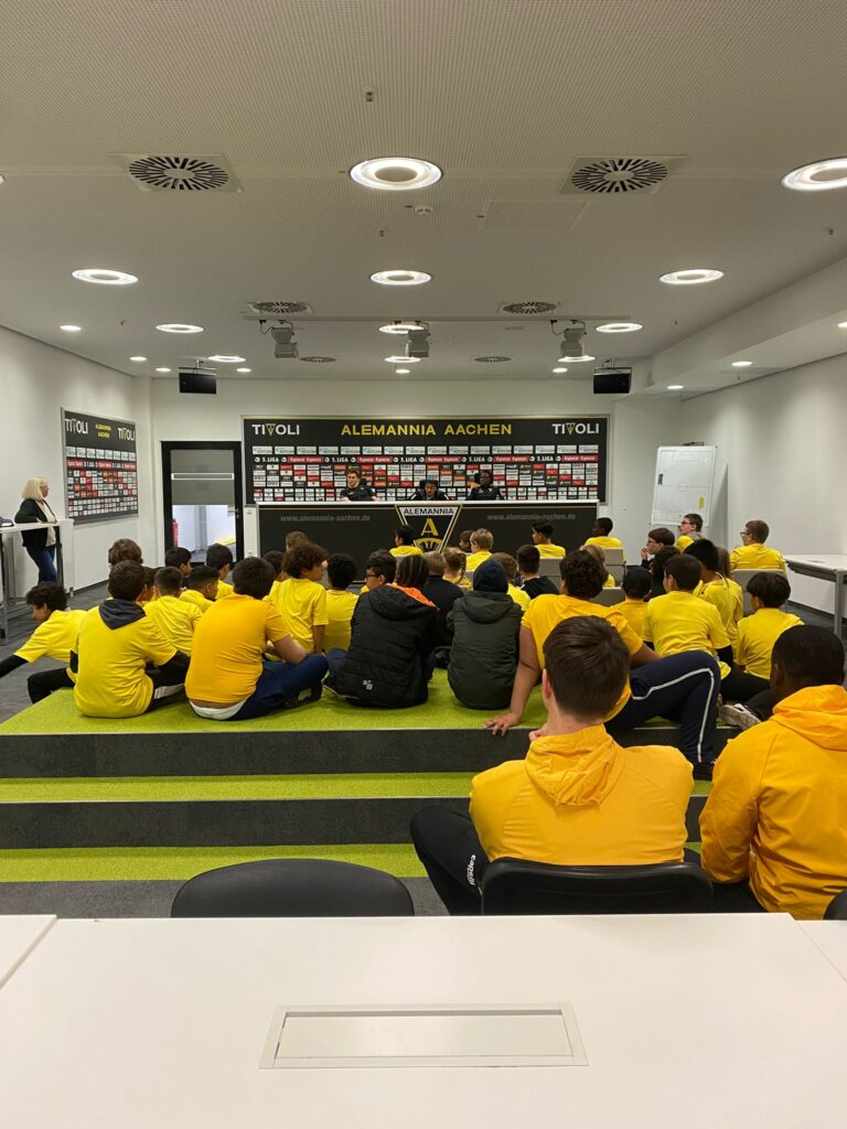Zum Programm gehörte auch eine Pressekonferenz mit der ersten Mannschaft der Alemannia Aachen und eine Stadionführung. Jedes Kind hat ein eigenes Trikot, eine Trinkflasche und eine Urkunde bekommen.